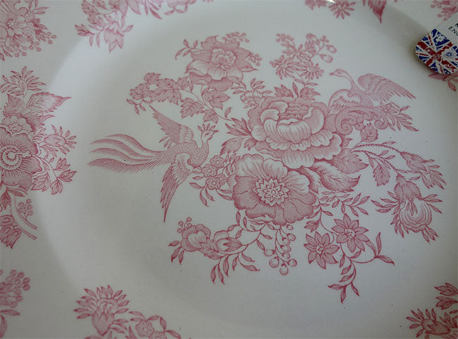 イギリス製 Burleigh バーレイ社 Pink Asiatic Pheasants ピンクアジアティックフェザンツ プレート 25.5cm  お皿 皿 大皿 洋食器 テーブルウエア 英国食器 花柄 ピンク