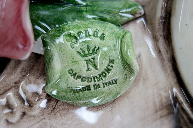 イタリア製のハンドメイド陶器フラワーベースは、繊細な薔薇の陶花が美しく施された逸品です。