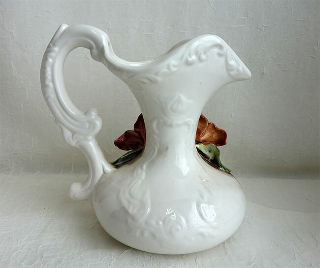 イタリア製のハンドメイド陶器フラワーベースは、繊細な薔薇の陶花があしらわれた高さ20cmのエレガントな装飾品です。