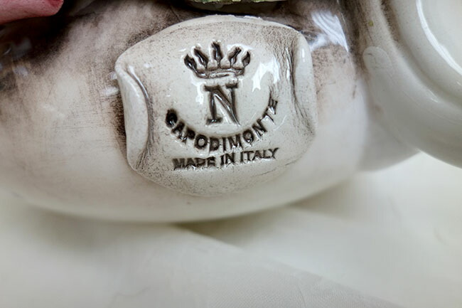 イタリア製 陶花 フラワーベース 薔薇 高さ20cm インテリア置物 装飾品 ディスプレイ アンティーク風 輸入雑貨  ハンドメイド ハンドペイント