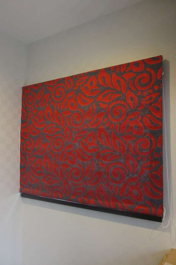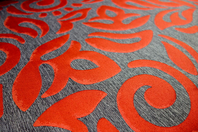 スペイン製の高品質生地を使用したオーダーカーテン「カサノヴァRD」は、レッドとグレーのモダンな配色が空間に洗練された印象を与えます。