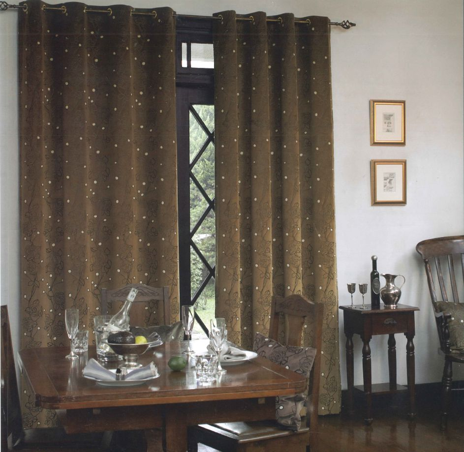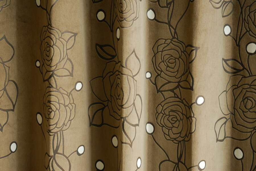 オーダーカーテン(ドレープ) イタリア製 ベルベット バラ模様 「アヴェルサ BR」 ブラウン 遮光1級 共布タッセル付き インポートカーテン