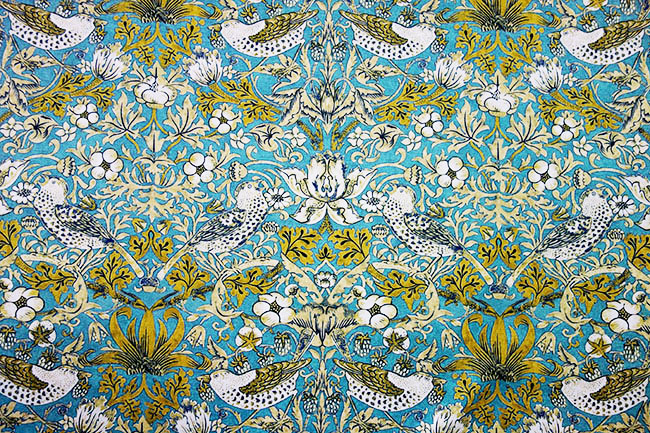 オーダーカーテン(ドレープ) スペイン製 ヴィバルディ BL(水色) 鳥柄 『ウィリアムモリスデザイン いちご泥棒』ブルー インポートカーテン