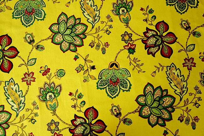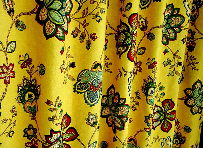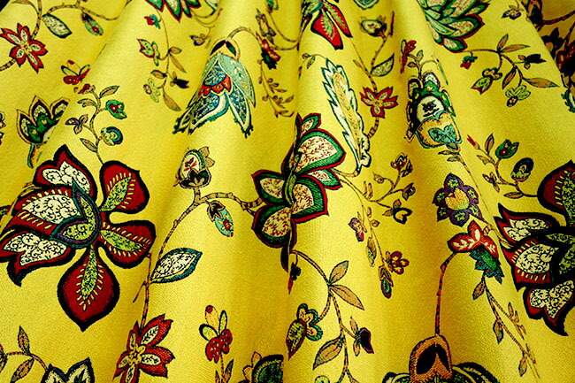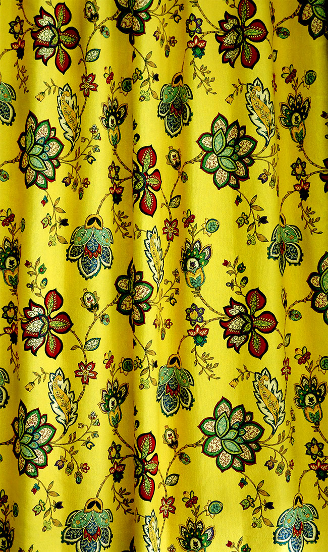 オーダーカーテン(ドレープ) スペイン製 花柄「モガンボYE」 ヨーロッパ 遮光3級 イエロー 共布タッセル付き インポートカーテン