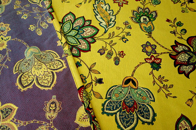 スペイン製の高級生地を用いたオーダーカーテン「シロコ」は、伝統的なゴブラン織りで繊細に表現された花柄モチーフが魅力です。