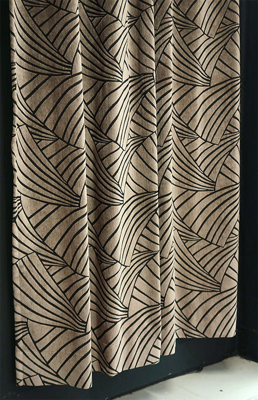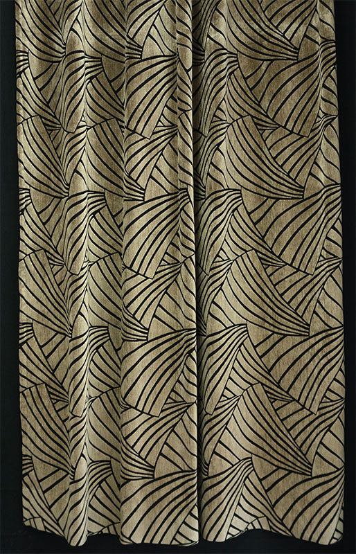 オーダーカーテン(ドレープ) スペイン製 遮光1級 「フランクリンBE」 イチョウ柄 ベージュ 生地極厚 共布タッセル付き インポートカーテン