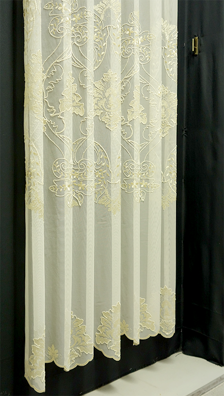 輸入オーダーカーテン(レース) 高級 トルコ製 『フロッショローズ』薔薇裾柄 クラッシュ加工(しわ加工)レースカーテン
