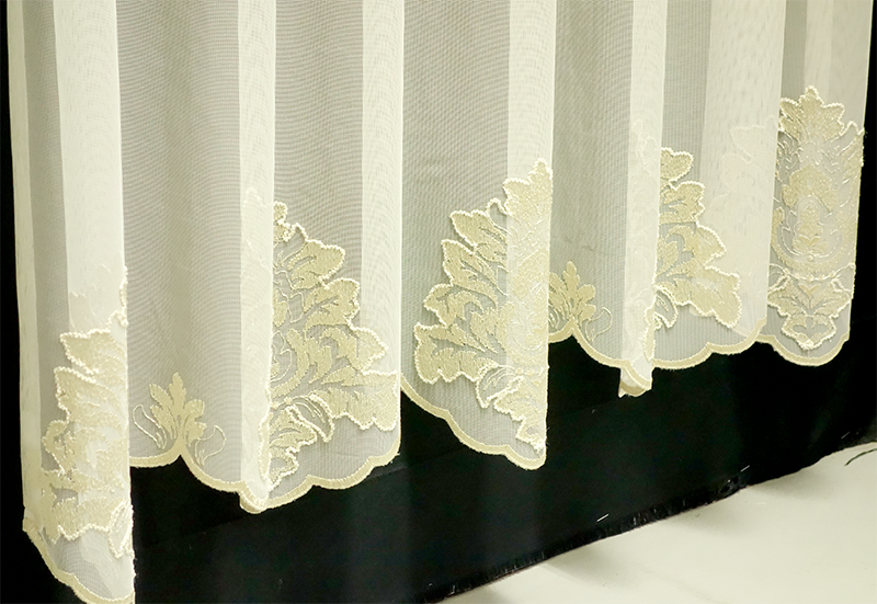 輸入オーダーカーテン(レース) 高級 トルコ製 『ローズライン』ステッチ裾2段柄レースカーテン