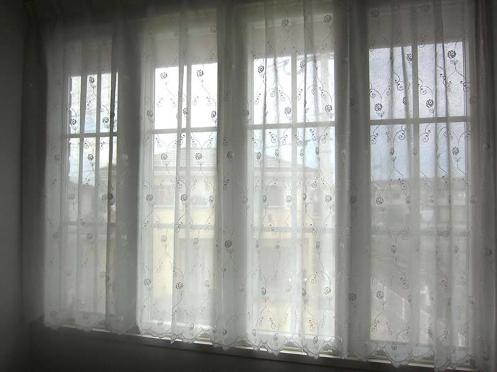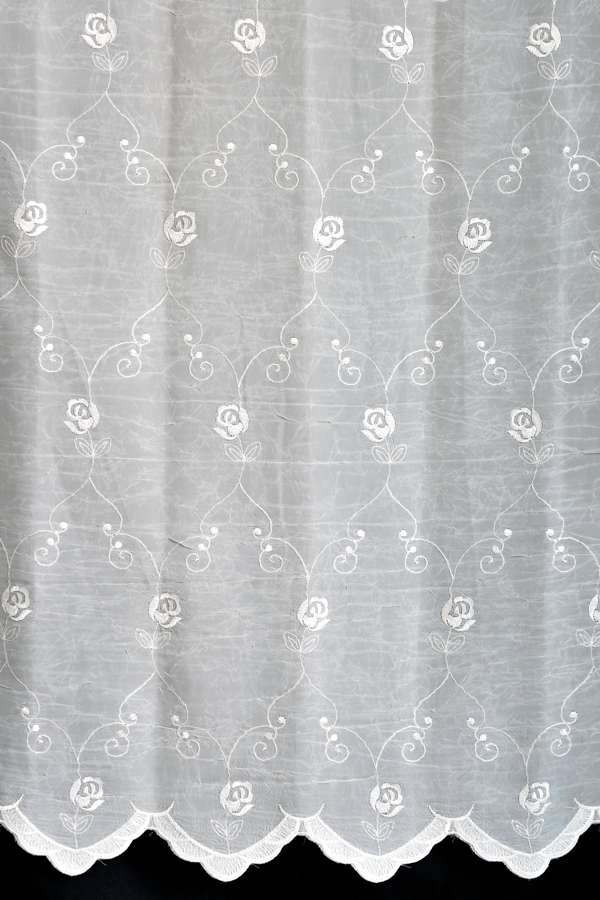 輸入オーダーカーテン(レース) 高級 トルコ製 『フロッショローズ』薔薇裾柄 クラッシュ加工(しわ加工)レースカーテン